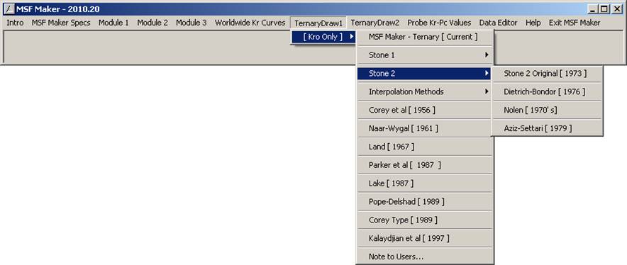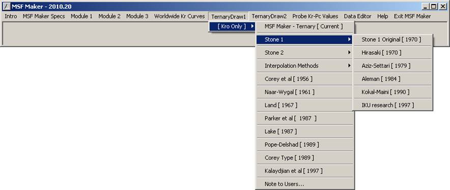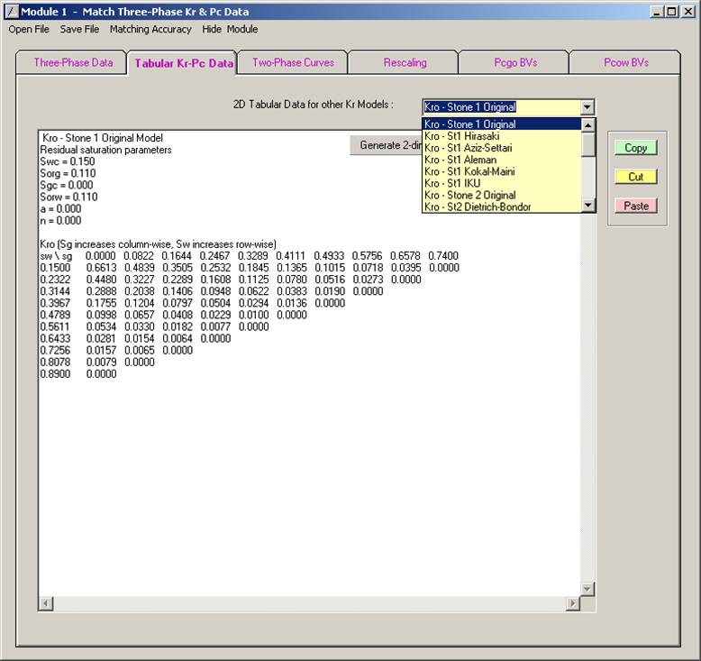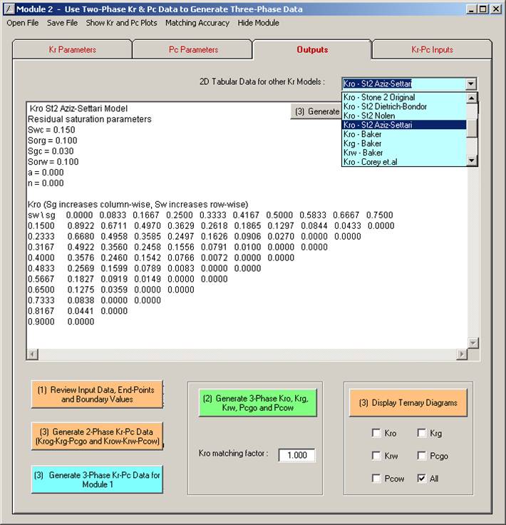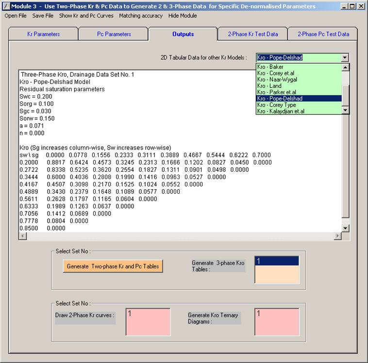 tabular data of three-phase Kro, Krg and Krw estimated by the various models by: